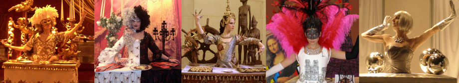 Inspirés des élégants personnages allégoriques des XVII et XVIIIème Siècles, les Buffets Vivants portent des robes formant de vastes plateaux roulants recouverts de petits fours et circulent parmi les invités qui se servent à leur passage.
